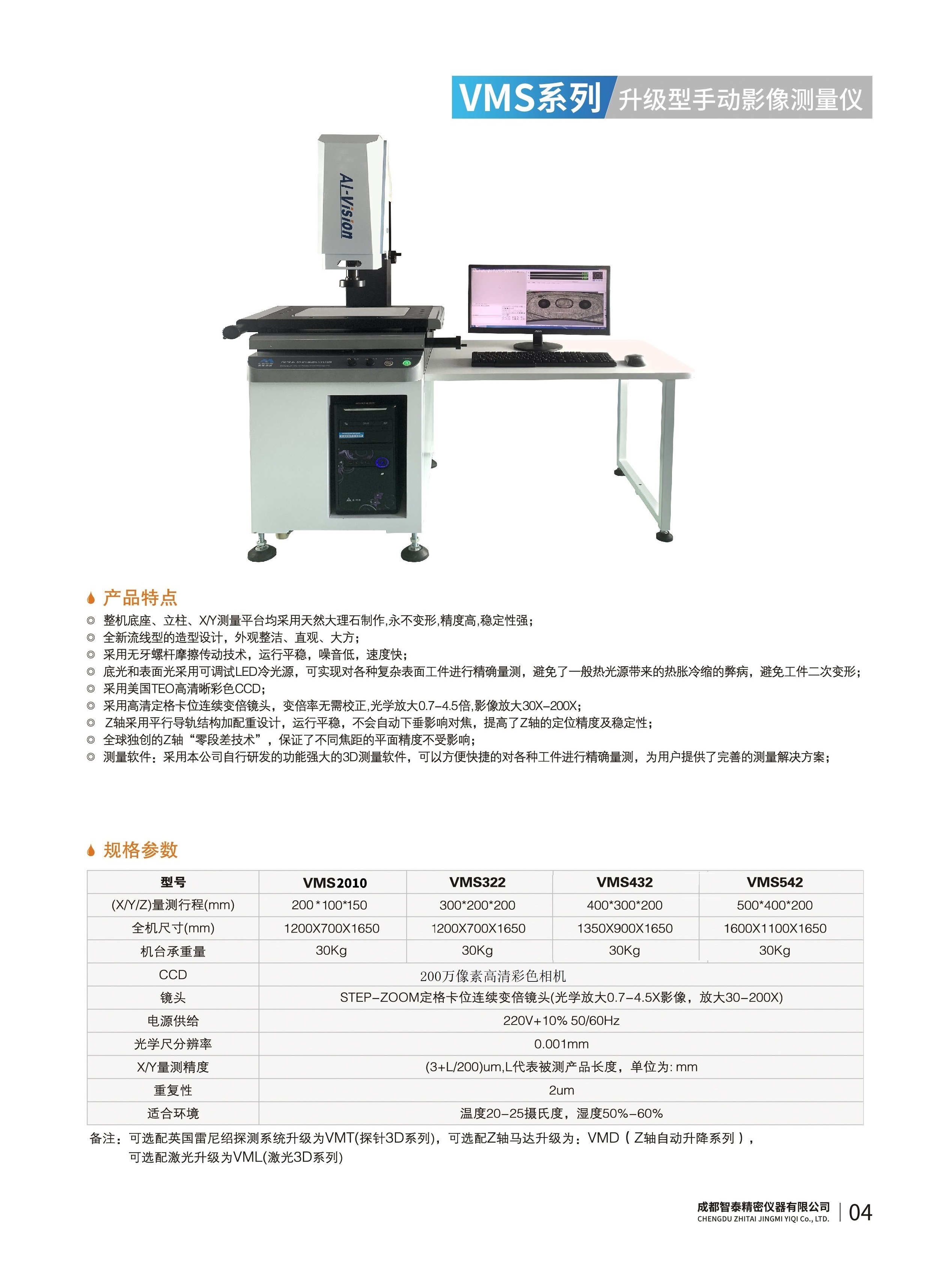 成都智泰精密儀器有限公司專注于精密測量儀器,人工智能,智能制造領域,專業(yè)從事智能視覺自動化檢測解決方案的貿(mào)易型企業(yè)。公司成立于2011年,位于天府之國成都,現(xiàn)有行業(yè)精英十余人,辦公倉儲面積200余平米。 公司主要產(chǎn)品為精密光學影像測量儀,精密輪廓形狀測量儀,精密機器人定位系統(tǒng),精密智能視覺尺寸檢測儀器,精密表面缺陷智能檢測設備,工業(yè)工程特種機器人。 公司憑借過硬的技術實力和產(chǎn)品方案,率先進入智能視覺自動化檢測領域,推廣以精密智能視覺自動化檢測為基礎的機器人自動化應用,公司不斷整合上下游的資源,擁有巨大的全產(chǎn)業(yè)鏈優(yōu)勢。客戶群體覆蓋了我國精密制造業(yè)的多數(shù)領域,包括航空、航天、軍工、汽車、新能源、光伏、食品,精密電子、精密機械、模具、PCB、LCD、五金、塑膠、醫(yī)療、教育、計量及科研院所等行業(yè)。 公司創(chuàng)新的產(chǎn)品能滿足生產(chǎn)與制造行業(yè)客戶的要求,訓練有素的工程師能及時提供多種技術服務,如解...